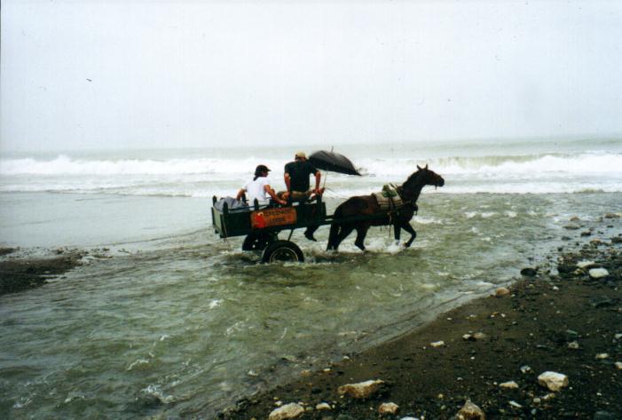 Amanece lloviendo. Aunque por la noche no ha llovido mucho, el cielo está encapotado. Teníamos pensado volver a intentar ir a Sirena pero no hay muchas esperanzas. Aún así, a eso de las 8 decidimos intentarlo e ir a Carate. Nos preparan un box lunch y partimos por la playa. Vadeamos varios riachuelos y vemos algún mono y algunos halcones. Al llegar a río Carate, Javier se vuelve: no qquiere mojarse los pies. Cruzamos el río (Paz a caballito de Eduardo) y vemos la avioneta aterrizar. Me pongo las botas y me alargo los pantalones. Nos han dicho que en Sirena hay multitud de mosquitos. Nos hacemos varias fotos junto al avión, mientras esperamos a ver cómo evoluciona el tiempo en Sirena. Sien embargo, el tiempo empeora y rompe a llover.